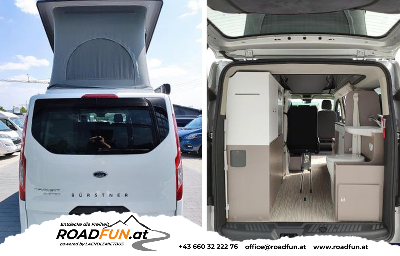 geniales Konzept von Bürstner. Der Bürstner Copa C530 auf Ford Tourneo Custom Basis mit langem Radstand ist der Urban-Camper für 4 (5) Personen. Klein wendig kompakt, passt er auf alle Parkplätze. Der Copa ist mit allem Komfort ausgestattet wie ein großer Camper, sogar mit eingebauter Thetford Toilette und Dusche, Aufstelldach, 2-er Sitzbank-Umbau zum Schlafsofa... optional kann auch noch ein 5.Sitz eingebaut werden (nicht inkludiert)