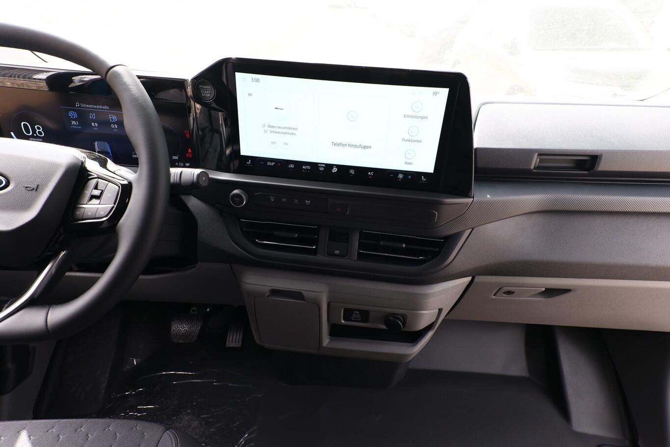 4 Lautsprecher, AdBlue Tank Tank: 20L, Airbag Fahrerseite, Audiosystem: Radioempfang Digital (DAB / DAB+) mit 13" Multifunktionsdisplay und SYNC 4, Außenspiegel elektr. verstell-, heiz- und anklappbar, Beifahrerdoppelsitz mit Durchladefunktion, Blinkleuchte in Außenspiegel integriert, Einparkhilfe vorn und hinten, Fahrassistenz-System: Falschfahrer-Warnfunktion, Fahrassistenz-System: Pre-Collision-System, Fahrassistenz-System: Spurhalteassistent, Fahrassistenz-System: Verkehrsschildassistent, Geschwindigkeits-Regelanlage, Intelligenter Geschwindigkeits-Begrenzer, Kraftstofftank: 55 Ltr., Lenkrad (Sensico) mit Multifunktion, LM-Felgen 16 Zoll, Navigation in Verbindung mit dem Smartphone (über Apple Carplay / Android Auto /...), Reifen 215/65 R16, Rückfahrkamera, Schadstoffarm nach Abgasnorm Euro 6e (EU6 EA), Smartphone-Schnittstelle (Apple CarPlay / Android Auto), Steckdose 12V, Verzurrösen (8), Sitz-Paket 46: Fahrersitz (4-fach verstellbar) - Beifahrerdoppelsitz, Sitzheizung, Stoff (Sitze im Fahrerhaus: Fahrersitz mit Lendenwirbelstütze / Armlehne Fahrersitz / Sitze im Fahrerhaus: Fahrer- und Beifahrersitz heizbar), Scheinwerfer LED (Blinkleuchten LED / Fahrassistenz-System: Fernlichtassistent (Scheinwerfer mit Abblendautomatik) / Tagfahrlicht LED), Außenspiegel in Wagenfarbe, Bodenbelag: Vinyl im Lade-/Fahrgastraum, Feststellbremse elektrisch, FordPass Connect inkl. eCall, Heckflügeltüren, Karosserie/Aufbau: Kasten Standard, KeyFree-System, Laderaumleuchte LED, extra hell, Laderaumtrennwand Metall, Motor 2,0 Ltr. - 125 kW EcoBlue KAT, Power KeyFree-Startfunktion, Radstand 3500 mm, Schiebetür Lade-/Fahrgastraum rechts, Schmutzfänger hinten, Schmutzfänger vorn, Verkleidung im Lade-/FG-Raum: hoch, Zul. Gesamtgewicht 3,20 t, Anti-Blockier-System (ABS), Antriebsart: Frontantrieb, Elektron. Stabilitäts-Programm (ESP), Traktionskontrolle, Getriebe Automatik - (8-Stufen), Klimaautomatik, Airbag Beifahrerseite, Fensterheber elektrisch vorn mit Quickdown / -up-Schaltung Fahrer-/Beifahrerseite, Zentralverriegelung mit Fernbedienung, Frontscheibe heizbar, Scheibenwischer mit Regensensor, Reifendruck-Kontrollsystem, Rußpartikelfilter, Start/Stop-Anlage