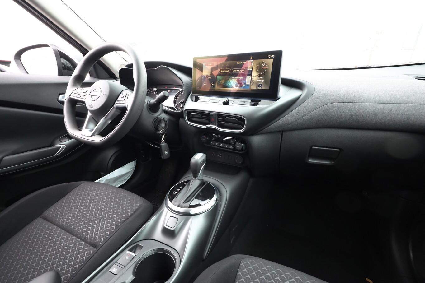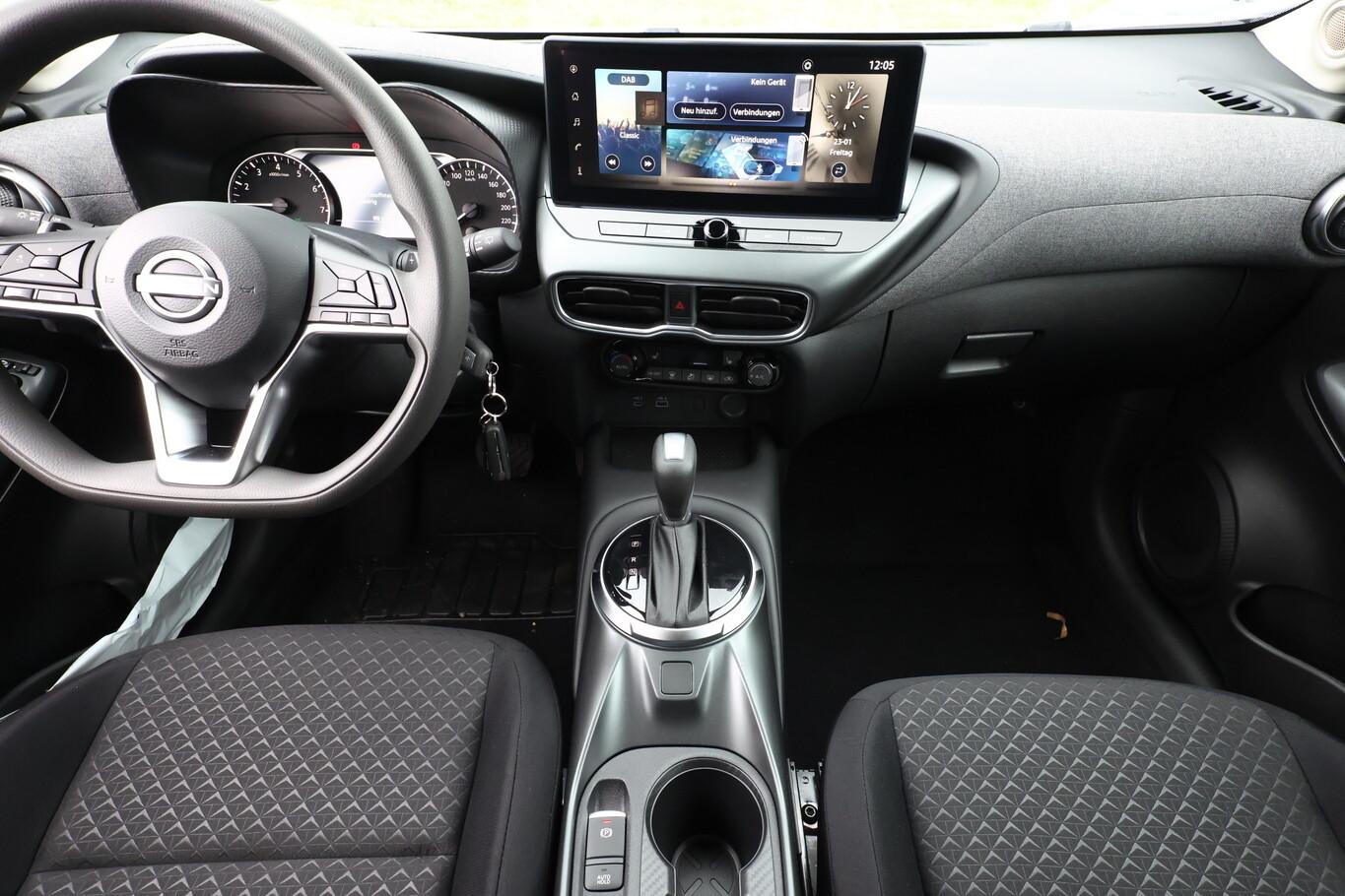 Komfort-Paket (Innenraumfilter: Pollenfilter / Klimaautomatik / Sitzheizung vorn / Außenspiegel heizbar / Scheibenwischer mit Regensensor), 4 Lautsprecher, elektr. Bremskraftverteilung (EBD), Fahrassistenz-System: Aufmerksamkeitssystem, Fahrassistenz-System: Intelligente Spurverlassenswarnung, Fahrassistenz-System: Kreuzungsassistent, Fahrassistenz-System: Lichtautomatik, Feststellbremse elektrisch mit Auto Hold-Funktion, Herstellgarantie: 3 Jahre / 100.000km, Instrumentenanzeige TFT-Farbdisplay (7 Zoll), MirrorLink (Android Auto, Apple Carplay), Navigation in Verbindung mit dem Smartphone (über Apple Carplay / Android Auto /...), Reifen 215/60 R17, Stahlfelgen 17 Zoll, USB-Schnittstelle vorn, Anti-Blockier-System (ABS) (Elektr. Bremskraftverteilung (EBD)), Außenspiegel elektr. verstellbar (Blinkleuchte in Außenspiegel integriert), Fahrassistenz-System: Autonomer Notbrems-Assistent (Fahrassistenz-System: Fußgängererkennung), Geschwindigkeits-Begrenzeranlage, Karosserie: 5-türig, Motor 1,0 Ltr. - 84 kW 12V KAT, Radstand 2636 mm, Sitz vorn links höhenverstellbar, Sonnenblenden mit Spiegel, Steckdose (12V-Anschluß), Touchscreen-Farbdisplay (12,3 Zoll), Bremsassistent (Nissan Brake-Assist), Antriebsart: Frontantrieb, Elektron. Stabilitäts-Programm (ESP), Getriebe 7-Gang - Doppelkupplungsgetriebe DCT, Airbag Beifahrerseite abschaltbar, Airbag Fahrer-/Beifahrerseite und Seitenairbag vorn, Fensterheber elektrisch vorn + hinten, Isofix-Aufnahmen für Kindersitz, Kopf-Airbag-System, Rücksitz geteilt/klappbar, Sportsitze vorn (Monoform-Design), Fahrer-Informations-System (FIS) mit Farbdisplay, Fahrassistenz-System: Verkehrszeichenerkennung, Geschwindigkeits-Regelanlage (Tempomat), Rückfahrkamera, Fahrassistenz-System: Sicherheitssystem ERA GLONASS mit automatischem Notruf, Fahrassistenz-System: Fernlichtassistent, Scheinwerfer LED, Fahrassistenz-System: Kurvenbremskontrolle (Aktive Spurkontrolle), Reifendruck-Kontrollsystem, Start/Stop-Anlage
