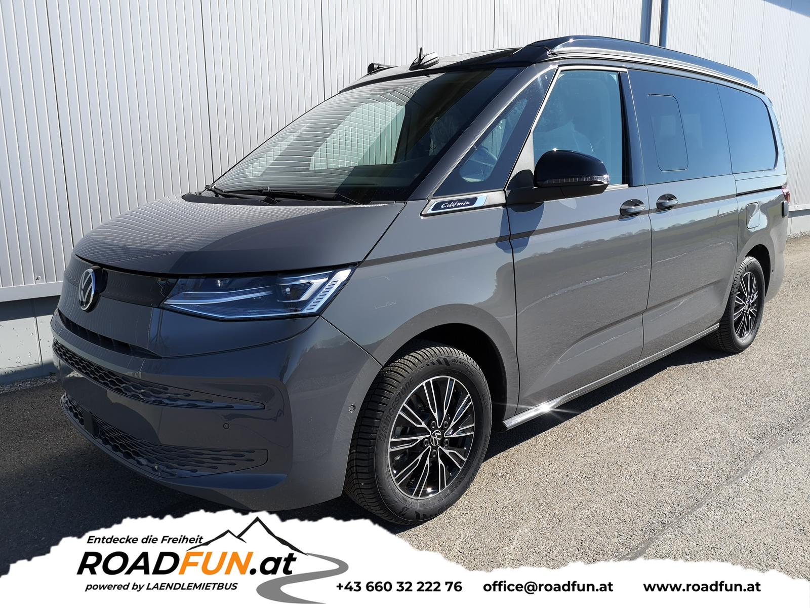 Sonstige: Zulassung als Wohnmobil, Werksanschlussgarantie auf 5 Jahre / max. 100.000 Km, Komfort und Funktion: 230-Volt-Einspeisung mit Ladefunktion für Fahrzeugbatterien, 230-Volt-Steckdose im Innenraum, 230-Volt-Steckdose mit Wechselrichter im Innenraum, Aufstelldach manuell, Faltenbalg grau mit 3 Fenstern und einer Frontöffnung, Faltenbalg in Basalt Grey, Digital Cockpit Pro, Geschwindigkeitsregelanlage elektronisch, Innenbeleuchtung Camper, LED-Hauptscheinwerfer mit LED-Tagfahrlicht, LED-Rückleuchten, Markisenschiene beidseitig in schwarz, Miniküche am Heck mit ausziehbarem einflammigen Gaskocher inkl. Technikbox mit Camper Batterie und 230-Volt-Steckdose, Campingtisch unter Bettverlängerung, 2 Campingstühle in der Heckklappe integriert, Multifunktions-Lederlenkrad mit Schaltwippen, Schlafplätze, 2 Schlafplätze im Aufstelldach oben (1.140 x 2.050 mm), 2 Schlafplätze im Wohnraum unten über gesamte Fahrzeugbreite (1.980 x 1.330 mm), Schubladen im Fahrer- und Fahrgastraum sowie unter den äußeren Sitzen inkl. 2 Abfallbehälter, Sitze, 2. Sitzreihe, 3 Einzelsitze mit Schlafauflage, Sitz Fahrer/Beifahrer drehbar mit Armlehnen an den Vordersitzen, beidseitig, mit elektrischer Lendenwirbelstütze, Sprachsteuerung plus ICC (InCarCommunication), Schiebetür links und rechts, Verdunklungssystem mit Rollos und Gardinen, Optik: Außenspiegelgehäuse in Schwarz hochglanz, Bodenbelag Kunststoff im Fahrgast-/Laderaum, Dekoreinlagen ""Scale Light Grey"", Fenster ab B-Säule abgedunkelt, 65% lichtabsorbierend, Scheinwerferleiste schwarz, Schiebefenster in der Schiebetür links und rechts, Infotainment: Wireless Mirror Link/App-Connect, Navigation über App Connect möglich (kompatibles Smartphone erforderlich), Lautsprecher 8 Stück, Bluetooth Schnittstelle, USB-C-Schnittstelle vorne & hinten, 2 USB vorne, 4 USB im FGSTR, Sicherheit und Fahrerassistenz: Ablenkungs- und Müdigkeitserkennung, Außenspiegel elektrisch einstell-, beheiz- und anklappbar, Einparkhilfe im Front- und Heckbereich, Notbremsassistent ""Front Assist"", mit Fußgänger- und Radfahrererkennung, Spurhalteassistent ""Lane Assist"", Tagfahrlichtschaltung mit Assistenzfahrlicht, Verkehrszeichenerkennung.